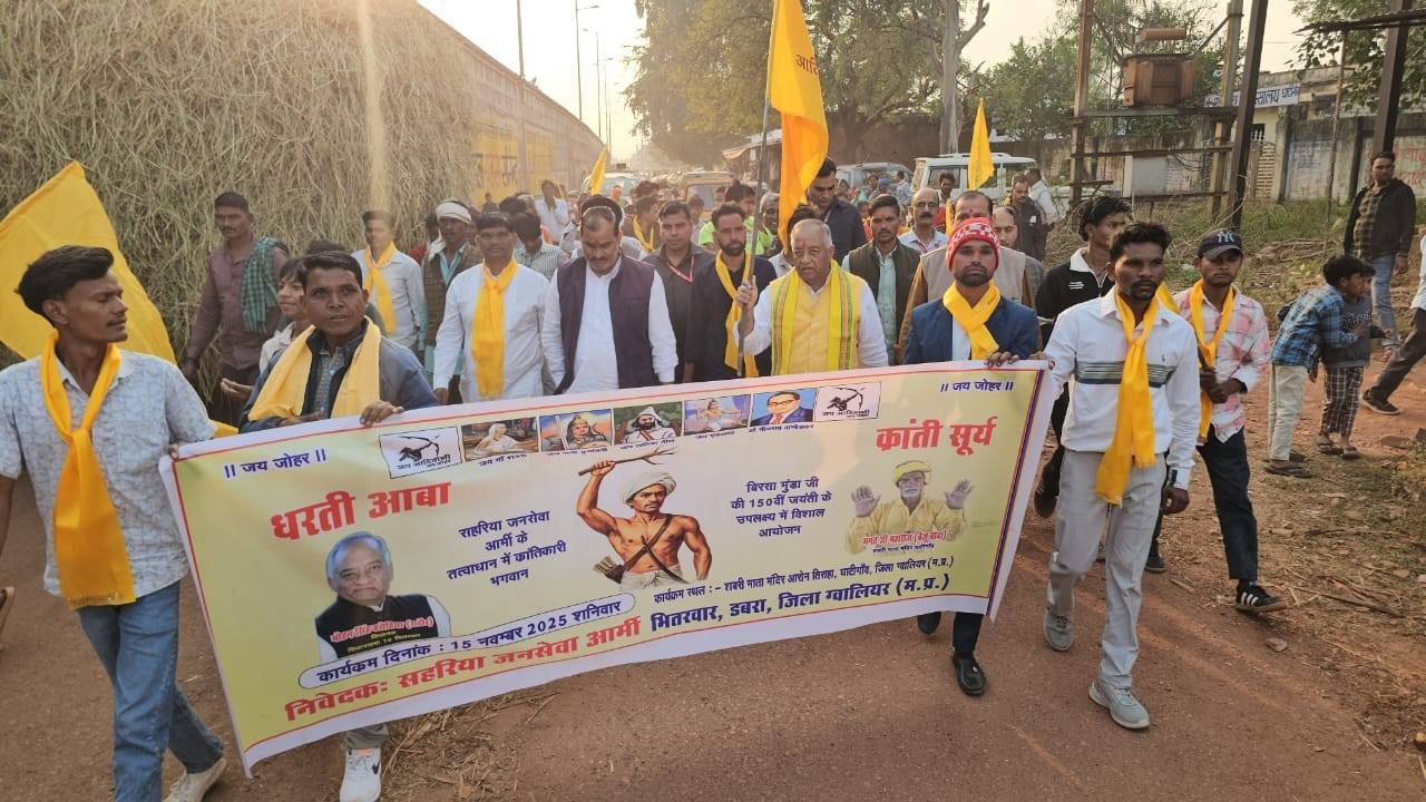 विधानसभा भितरवार ग्राम घाटीगाँव में भगवान बिरसा मुंडा जी की जयंती के अवसर पर भव्य रैली में सम्मलित होकर शबरी माता मंदिर पर दर्शन कर पूजा-अर्चना की गई। इस दौरान बिरसा मुंडा जी एवं शबरी माता की प्रतिमा पर माल्यार्पण कर आदिवासी समाज की महान परंपरा को नमन किया एवं कार्यक्रम में ग्रामीणों एवं समाजजन को शबरी माता मंदिर की भूमि आवंटन से जुड़ी महत्वपूर्ण जानकारी विस्तार से दी एवं भूमि आवंटन की वर्तमान स्थिति, आगे की प्रक्रिया तथा मंदिर के विकास के लिए होने वाले कदमों पर अधिकारियों के साथ सार्थक चर्चा की । इस अवसर पर श्री बेजु बाबा जी, श्री चंचल राठौड़ जी (मंडल अध्यक्ष), श्रीपत आदिवासी जी (जिला पंचायत सदस्य), श्री लाला राठौड़ जी, श्री रेनु आदिवासी जी (जनपद सदस्य), श्री सत्येन्द्र राठौड़ जी, श्री लल्ला पंडित जी, श्री अनूप राठौड़ जी, श्री मनोज आदिवासी जी, श्री राजमन आदिवासी जी सहित कई सम्मानित नागरिकों ने कार्यक्रम में सहभागिता की।