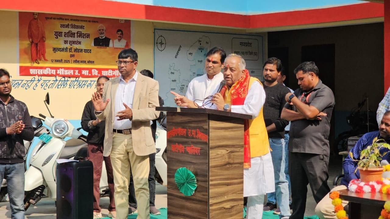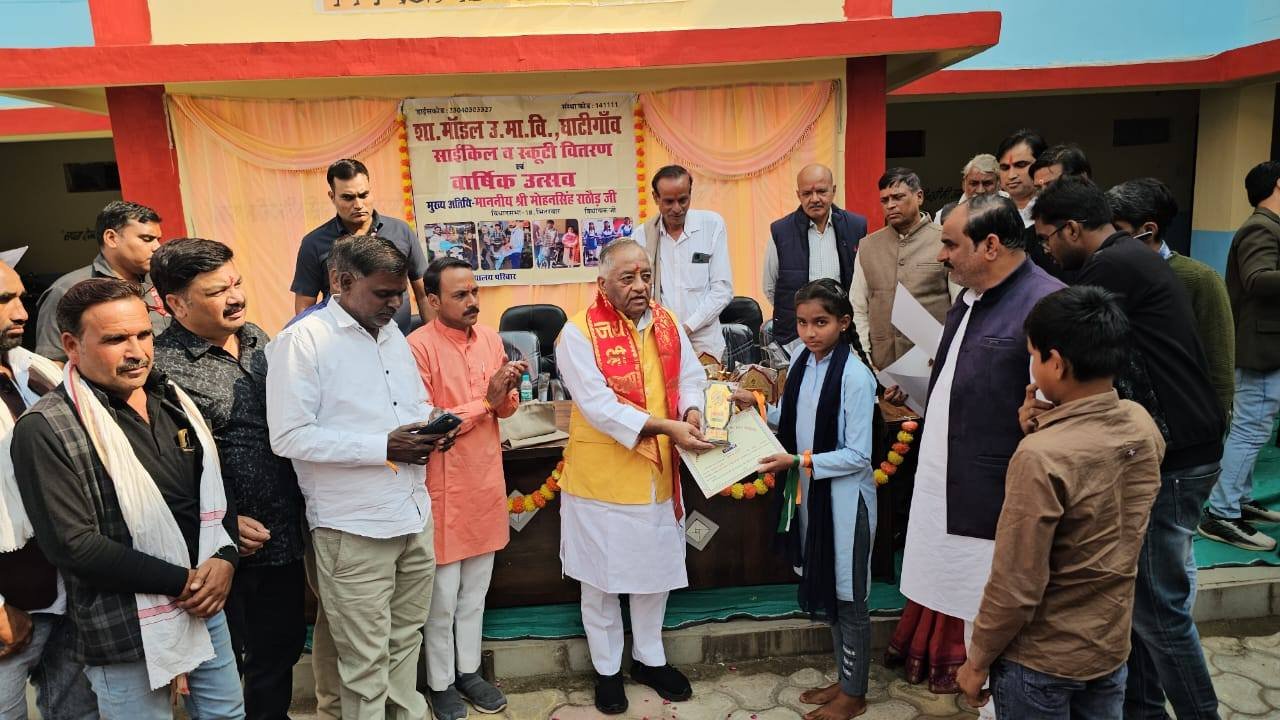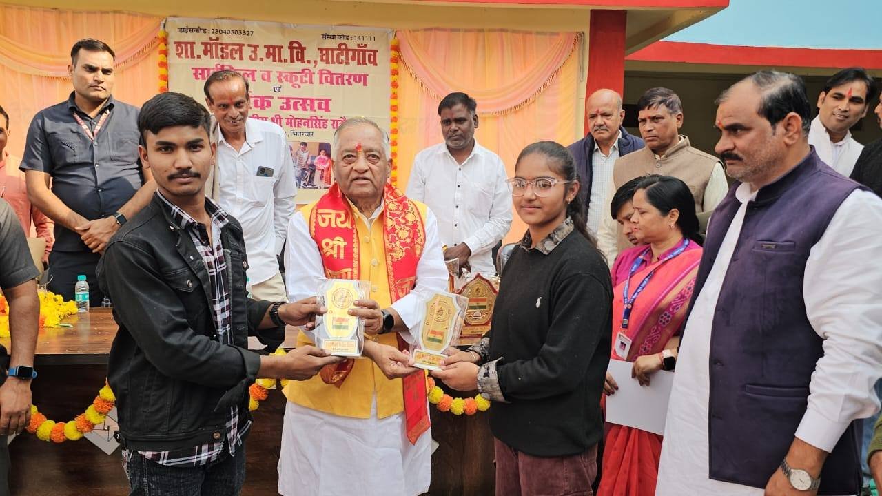 विधानसभा भितरवार ग्राम घाटीगाँव शासकीय मॉडल उच्चतर माध्यमिक विद्यालय में आयोजित साइकिल एवं स्कूटी वितरण तथा वार्षिक उत्सव कार्यक्रम में सम्मिलित हुआ। कार्यक्रम की शुरुआत मां सरस्वती पूजन कर विद्यालय के प्राचार्य एवं समस्त शिक्षकों द्वारा विद्यालय की आवश्यकताओं मांगों से अवगत कराया गया, जिन्हें गंभीरता से सुना एवं जल्द से जल्द निराकरण का आश्वासन दिया एवं विद्यार्थियों द्वारा प्रस्तुत सांस्कृतिक कार्यक्रमों का आनंद लिया तथा साइकिल एवं स्कूटी वितरण कर बच्चों को शिक्षा के प्रति प्रेरित करने एवं आत्मनिर्भर बनने और पर्यावरण संरक्षण का संदेश दिया। ? यह आयोजन विद्यार्थियों के उत्साह, प्रोत्साहन और जागरूकता बढ़ाने का उत्कृष्ट माध्यम रहा। इस अवसर पर श्री सीताराम दण्डोतिया जी (प्राचार्य मॉडल स्कूल),श्री G.K. श्रीवास्तव जी (प्राचार्य एक्सीलेंस स्कूल),श्री रामप्रकाश चौरसिया जी (जनपद सदस्य),श्री लाला राठौड़ जी,श्री नारायण जाटव जी (सरपंच),श्री लल्ला पंडित जी,श्री रविंद्र जैन जी,श्री अजीत जैन जी,श्री संतोष राठौड़ जी,श्री सुनील शर्मा जी,श्री अनूप राठौड़ जी,श्री अभिषेक राठौड़ जी,श्री धर्मवीर माथुर जी तथा समस्त भारतीय जनता पार्टी के कार्यकर्ता एवं जनसेवक साथी जी उपस्थित रहे।