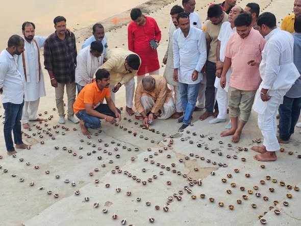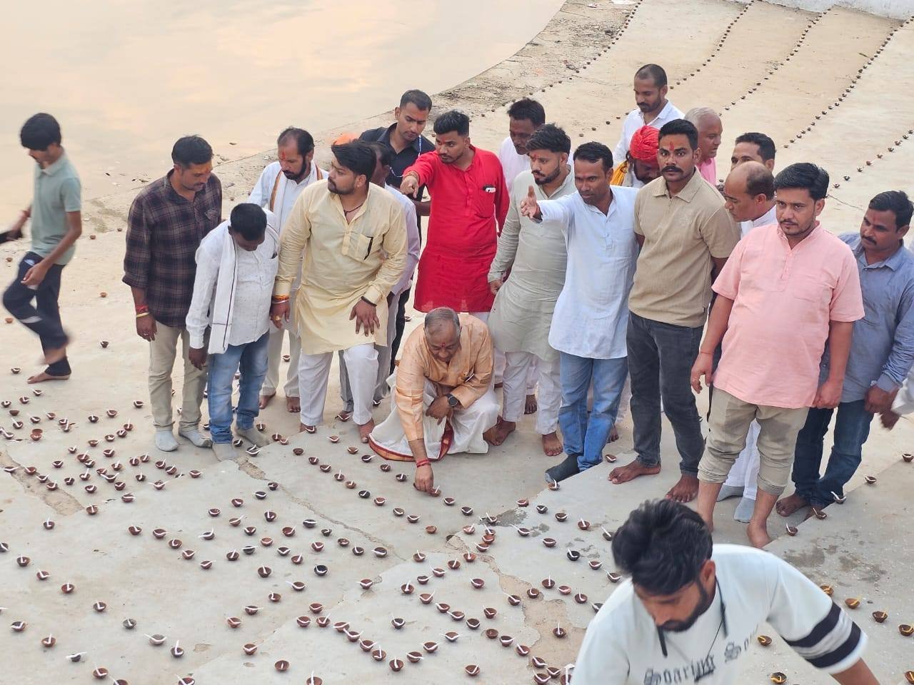 भितरवार पार्वती नदी के दियादाह घाट पर महंत श्रीश्री 1008 महामंडलेश्वर स्वामी श्री अनिरुद्धवन जी महाराज की अनुकंपा से दीपावली के पावन अवसर पर आयोजित भव्य सुंदरकांड पाठ एवं दीप दाह उत्सव कार्यक्रम में सहभागिता कर मर्यादा पुरुषोत्तम भगवान श्रीराम के मंगल गान से सम्पूर्ण वातावरण भक्ति, श्रद्धा और दिव्यता से ओतप्रोत हो उठा। सैकड़ों दीपों की झिलमिल रोशनी ने घाट को आलोकित कर दिया। “दीप जलाना केवल परंपरा नहीं — यह अंधकार पर प्रकाश, नकारात्मकता पर सकारात्मकता और असत्य पर सत्य की विजय का प्रतीक है।”