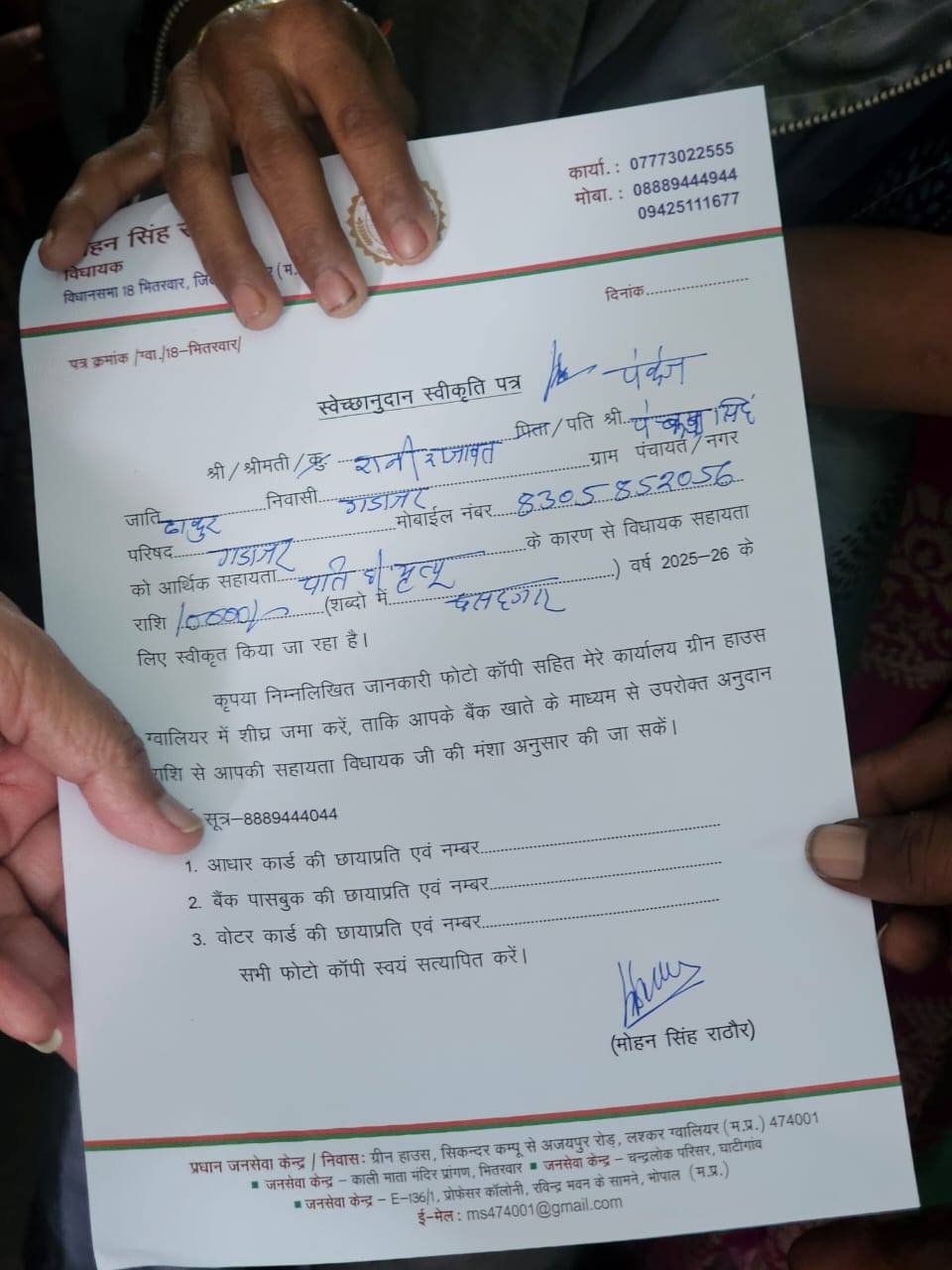विधानसभा भितरवार ग्राम गड़ाजर में श्री भगवंत पवैया जी के पिताजी के एवं श्री प्रेमनारायण शर्मा जी के भाई एवं श्री विजय सिंह राजावत जी के सुपुत्र स्व. पंकज राजावत जी के निधन की सुचना मिलने पर उनके निवास पर पहुँचकर शोक संवेदना व्यक्त की एवं उनकी पत्नी रानी राजावत जी को विधायक स्वेच्छानुदान निधि से 10000 रूपए की राशि लेटर द्वारा प्रदान की ईश्वर से प्रार्थना है कि दिवंगत आत्मा को अपने श्रीचरणों में विश्रांति प्रदान करें। ॐ शांति ॐ