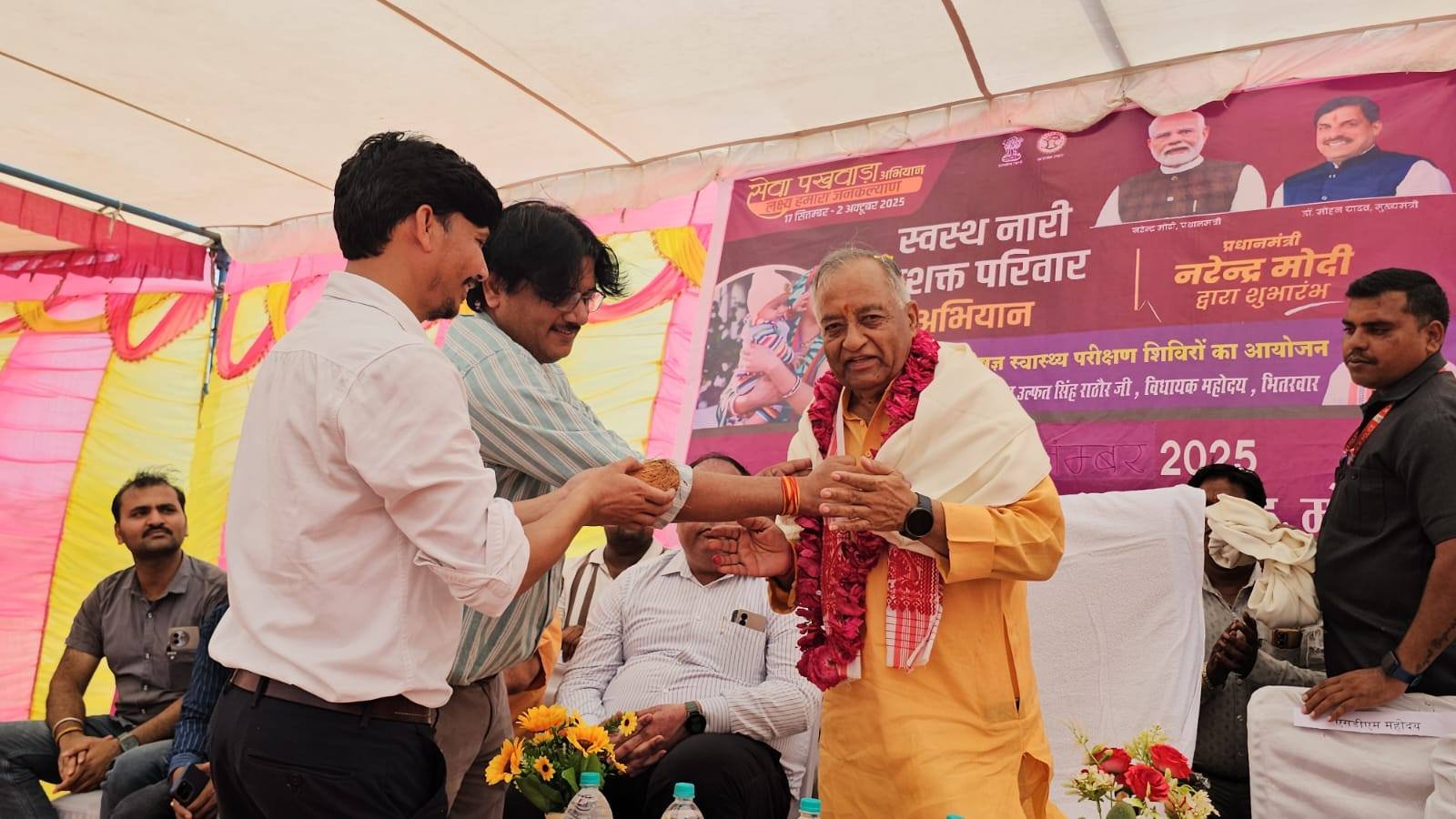 विधानसभा भितरवार ग्राम मोहना सामुदायिक स्वास्थ्य केंद्र पर भारतीय जनता पार्टी द्वारा चलाए जा रहे #सेवा_ही_संगठन_संकल्प के अंतर्गत #स्वस्थ_नारी_सशक्त_परिवार_अभियान कार्यक्रम में सम्मिलित हुआ इस अवसर पर नई X-Ray मशीन का पूजन कर शुभारंभ किया साथ ही हॉस्पिटल का निरीक्षण कर पलंग, चादर एवं तकियों की व्यवस्था सुनिश्चित की एवं विचार व्यक्त करते हुए महिलाओं के स्वास्थ्य, परिवार की सशक्त भूमिका और प्रधानमंत्री माननीय श्री Narendra Modi जी के नेतृत्व में चल रहे जनकल्याणकारी योजनाओं के बारे में अवगत कराया साथ ही कार्यक्रम में वृक्षारोपण कर पर्यावरण संरक्षण का संकल्प लिया। इस अवसर पर श्री सत्येन्द्र धाकड़ जी (मंडल अध्यक्ष), श्री निगम तोमर जी (मंडल महामंत्री),श्री मुन्ना सिंह तोमर जी, श्री संदीप सक्सेना जी (विधायक प्रतिनिधि), श्री परमानंद मिश्रा जी (विधायक प्रतिनिधि), श्री लालबाबु खान जी (पार्षद), श्री कमल खत्री जी (पार्षद), श्री वीरेंद्र रावत जी (पार्षद), श्री अंकित चौबे जी (पार्षद), श्री जितेन्द्र जाटव जी (पार्षद), श्री प्रीतम धाकड़ जी, श्री धर्मेंद्र तोमर जी, श्री बाले शिवहरे जी, श्री संतोष मिश्रा जी सम्मिलित हुए। साथ ही प्रशासन एवं स्वास्थ्य विभाग से — CMHO श्री सचिन श्रीवास्तव जी, SDM श्रीमती वंदना जैन जी, CBMO डॉ. साकेत सक्सेना जी, CMO डॉ. शियाशरण यादव जी, CHC प्रभारी श्री सतीश जाटव जी एवं अन्य चिकित्सकगण उपस्थित रहे