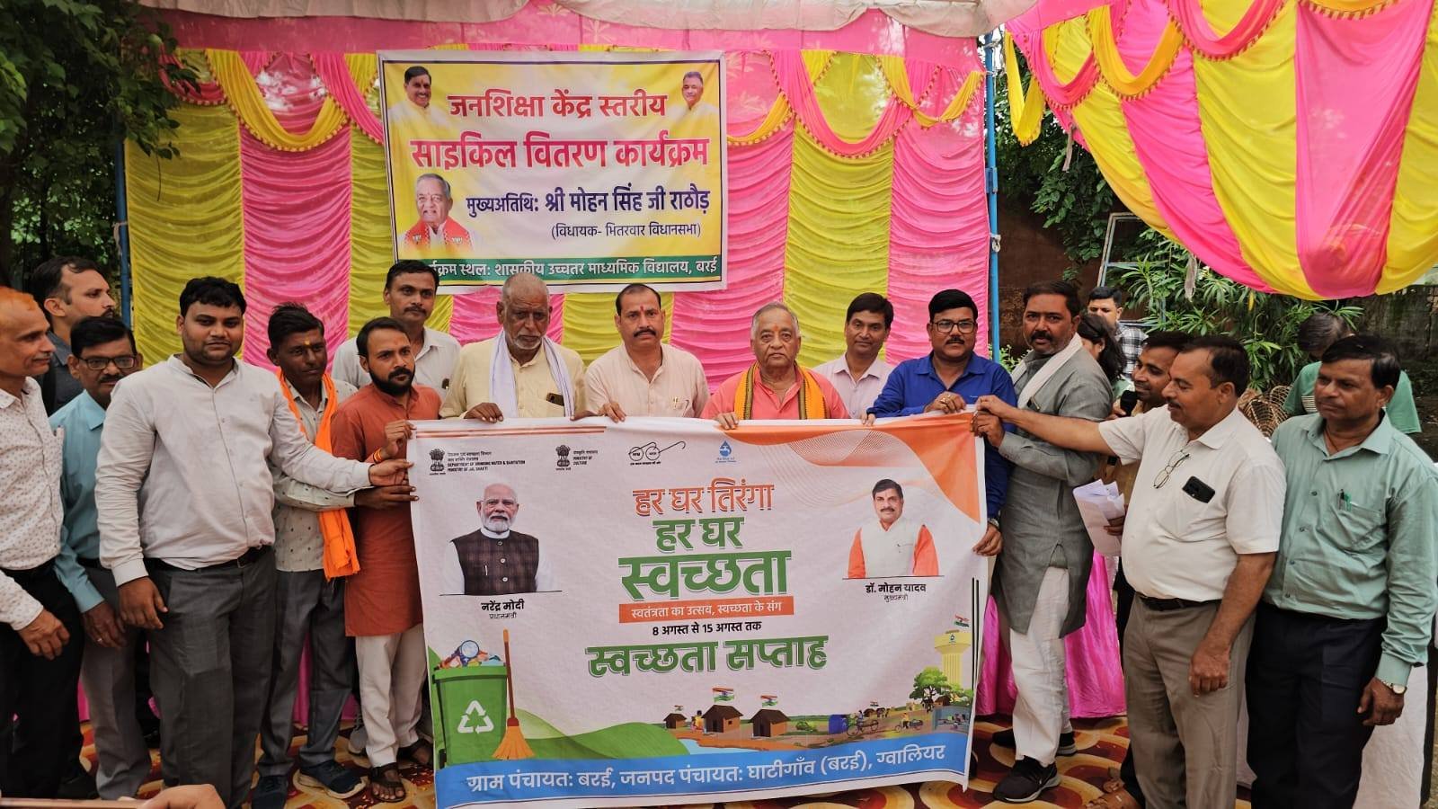 विधानसभा भिंतरवार ग्राम बरई शासकीय उच्चतर माध्यमिक विद्यालय में जनशिक्षा केंद्र स्तरीय साइकिल वितरण कार्यक्रम में सम्मिलित हुआ एवं कार्यक्रम में बच्चों द्वारा नशा मुक्ति और बेटा-बेटी में भेदभाव न हो विषय पर प्रस्तुतियां देखी और अपने विचार रखे एवं नशा मुक्ति पर प्रस्तुति देने वाले 7 बच्चों को प्रोत्साहन स्वरूप ₹2000-₹2000 रुपए की राशि की घोषणा की एवं छात्र-छात्राओं के साथ टेबल टेनिस खेल छात्र-छात्राओं को साइकिल वितरित कर स्वच्छता की शपथ दिलाई एवं हर घर तिरंगा यात्रा में सम्मलित होकर देशभक्ति का संदेश दिया। इस अवसर पर श्री चंचल राठौर जी (मंडल अध्यक्ष), श्री रामप्रकाश चौरसिया जी (जनपद सदस्य), श्री बदन सिंह कौरव जी (सरपंच), श्री पदम सिंह यादव जी, श्री हेम सिंह यादव जी, श्री दीपक कौरव जी एवं BEO, प्राचार्य, पंचायत इंस्पेक्टर, शिक्षकगण एवं छात्र-छात्राएं मौजूद रहे।