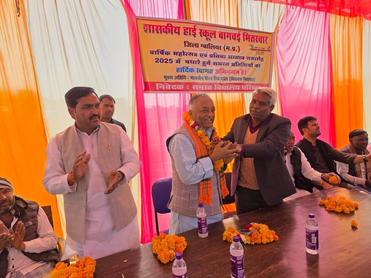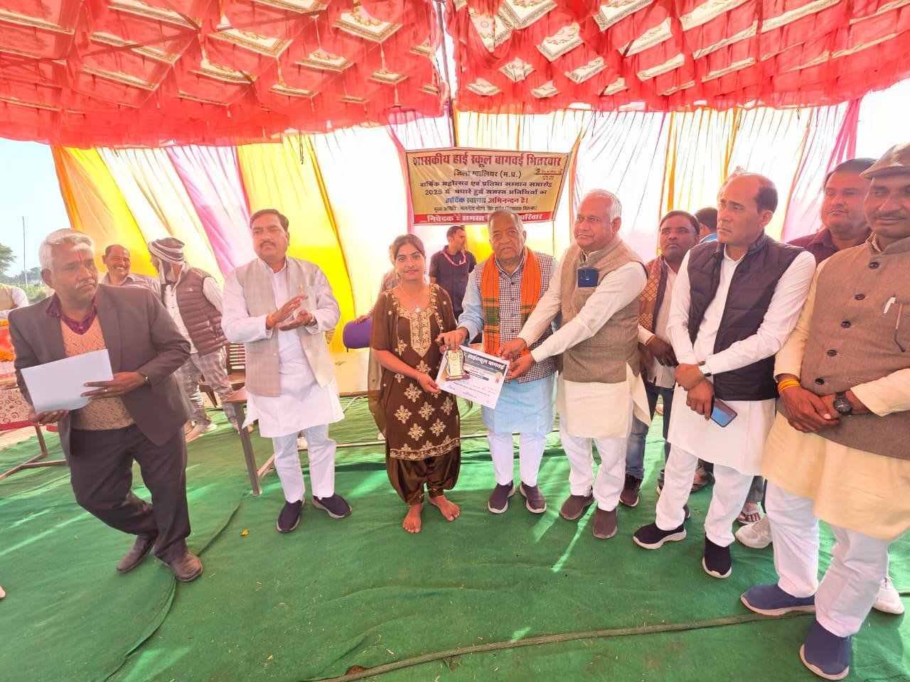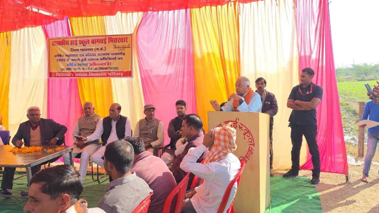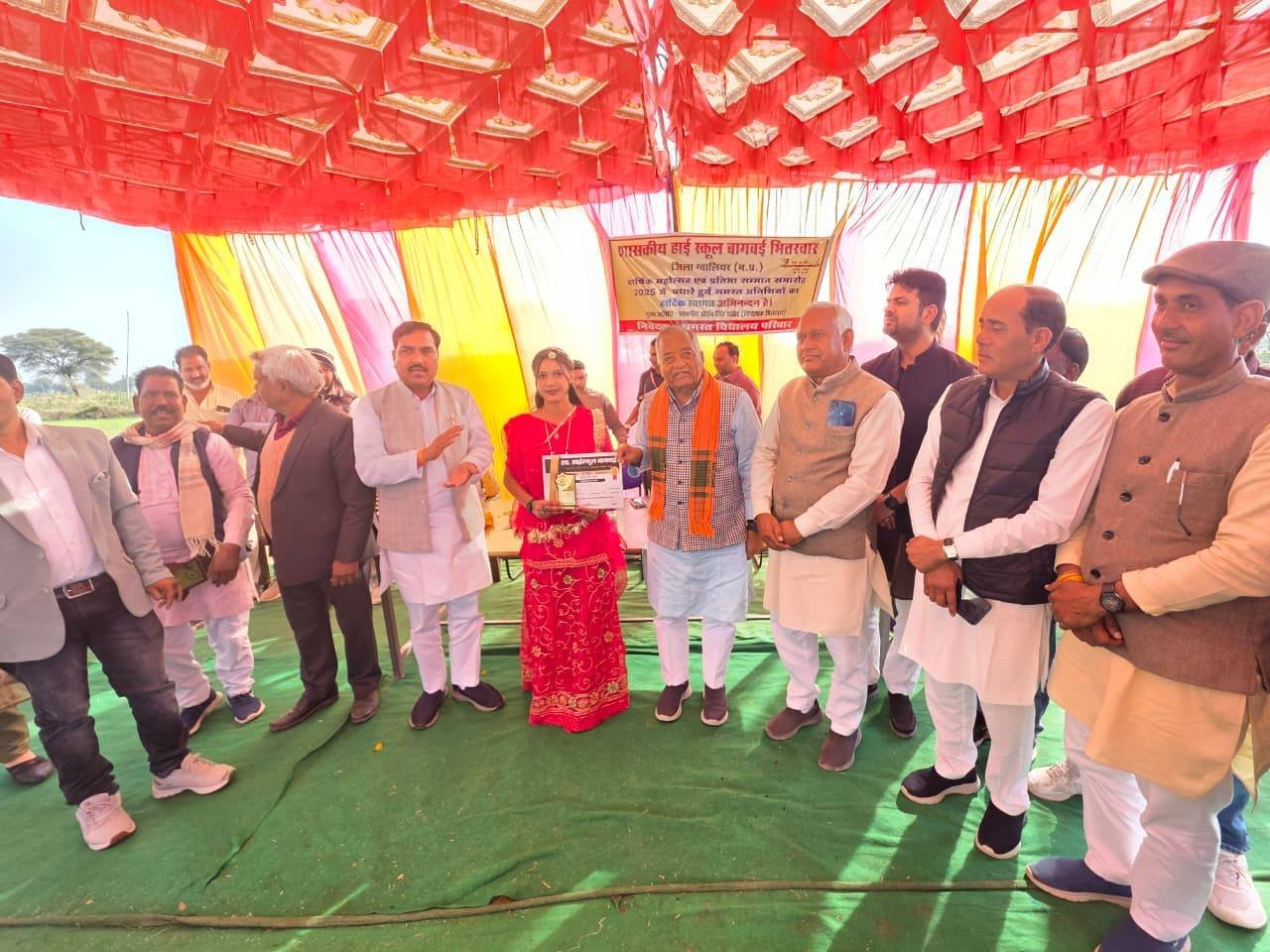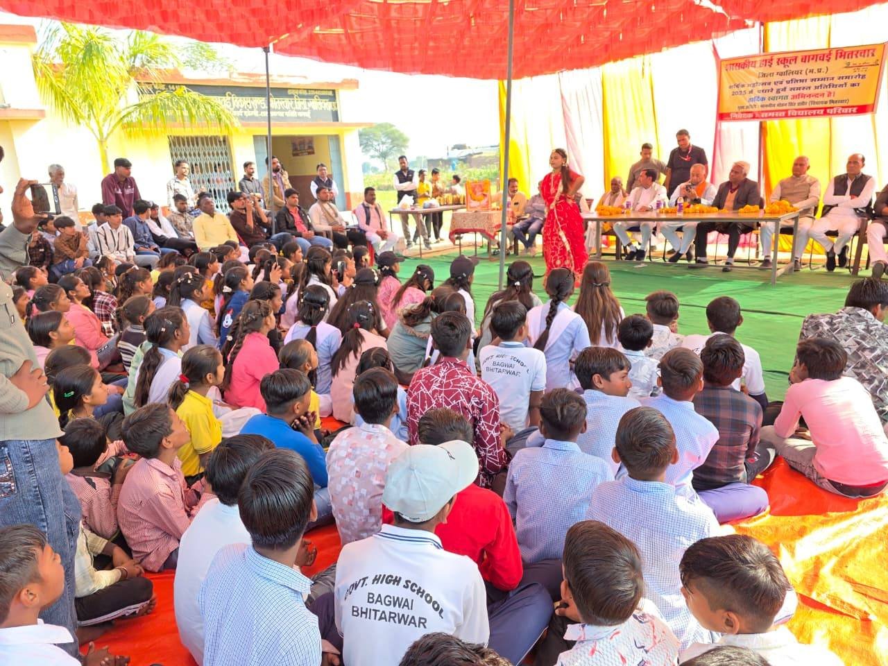 बच्चों की मुस्कान ही हमारी सबसे बड़ी सफलता_है। विधानसभा भितरवार ग्राम बागवई शासकीय हाई स्कूल में आयोजित वार्षिक उत्सव कार्यक्रम में सम्मलित होकर माँ सरस्वती पूजन कर विद्यार्थियों द्वारा मनमोहक सांस्कृतिक प्रस्तुतिया देख मेधावी छात्र-छात्राओं को पुरस्कार प्रदान कर उनका उत्साहवर्धन किया गया तथा बच्चों के उज्ज्वल भविष्य को लेकर प्रेरक विचार साझा किए। इस अवसर पर श्री नरेंद्र रावत जी(भितरवार मंडल अध्यक्ष), श्री नारायण शुक्ला जी(प्राचार्य), श्री अशोक गुर्जर जी (सरपंच ),श्री बलों गुर्जर जी (जनपद सदस्य) ,श्री भीकम सिंह जाट जी,श्री करेला गुरु जी,श्री उदयभान रावत,श्री आशीष कमंरिया जी,श्री बिजेंद्र गुर्जर जी ,श्री माधो कुशवाह जी,श्री बंटी गुर्जर जी , श्री हेमत बाथम जी, श्री सोमी शर्मा जी, श्री अरविंद गुर्जर जी,श्री कालों रावत जी,श्री रामलखन गुर्जर जी एवं विद्यालय परिवार, जनप्रतिनिधियों एवं भारतीय जनता पार्टी के कार्यकर्ता की गरिमामयी उपस्थिति रही।