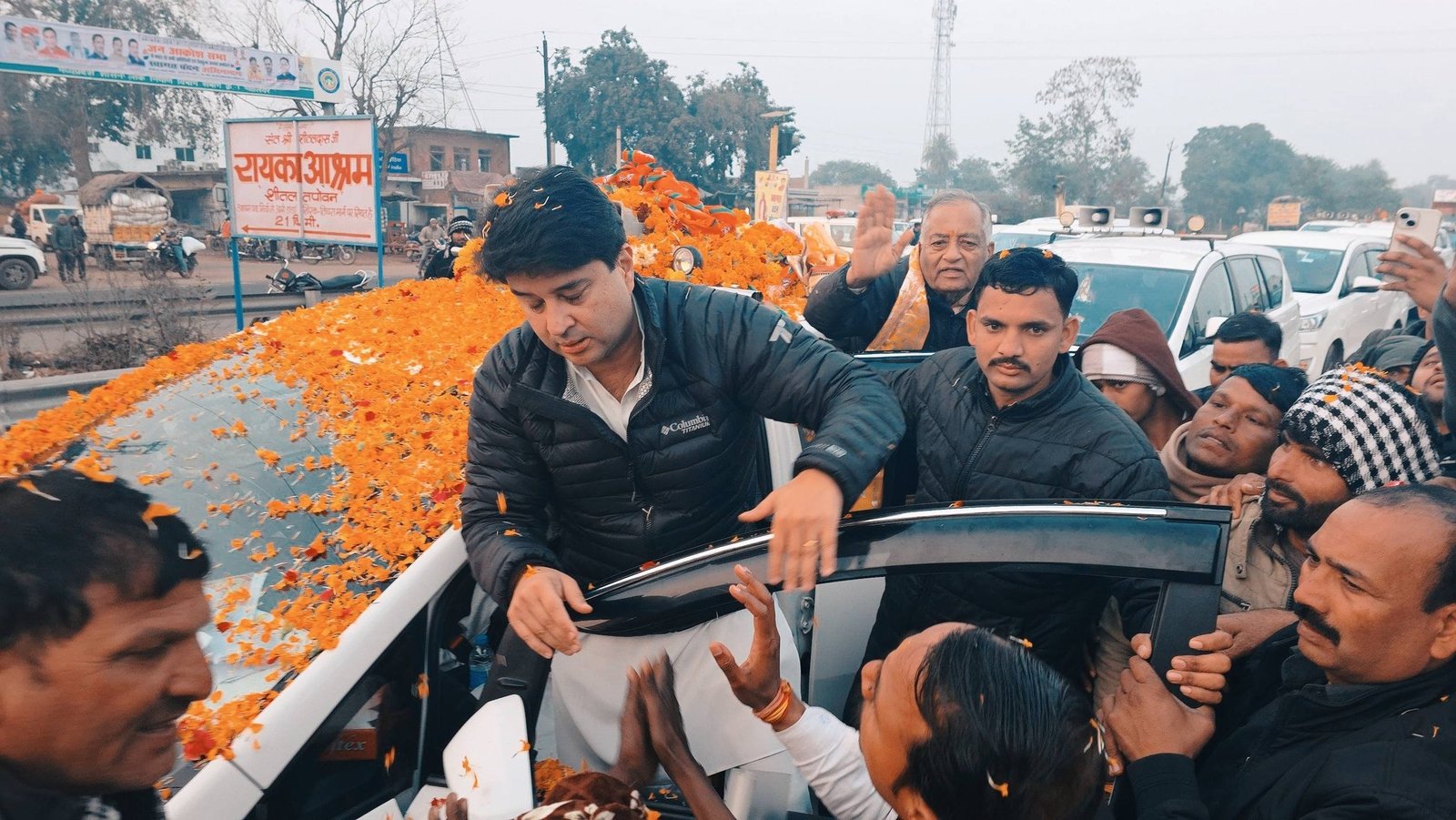 ग्वालियर से शिवपुरी जाते समय भितरवार विधानसभा क्षेत्र में केंद्रीय मंत्री श्रीमंत Jyotiraditya M Scindia जी का भव्य एवं आत्मीय स्वागत किया
