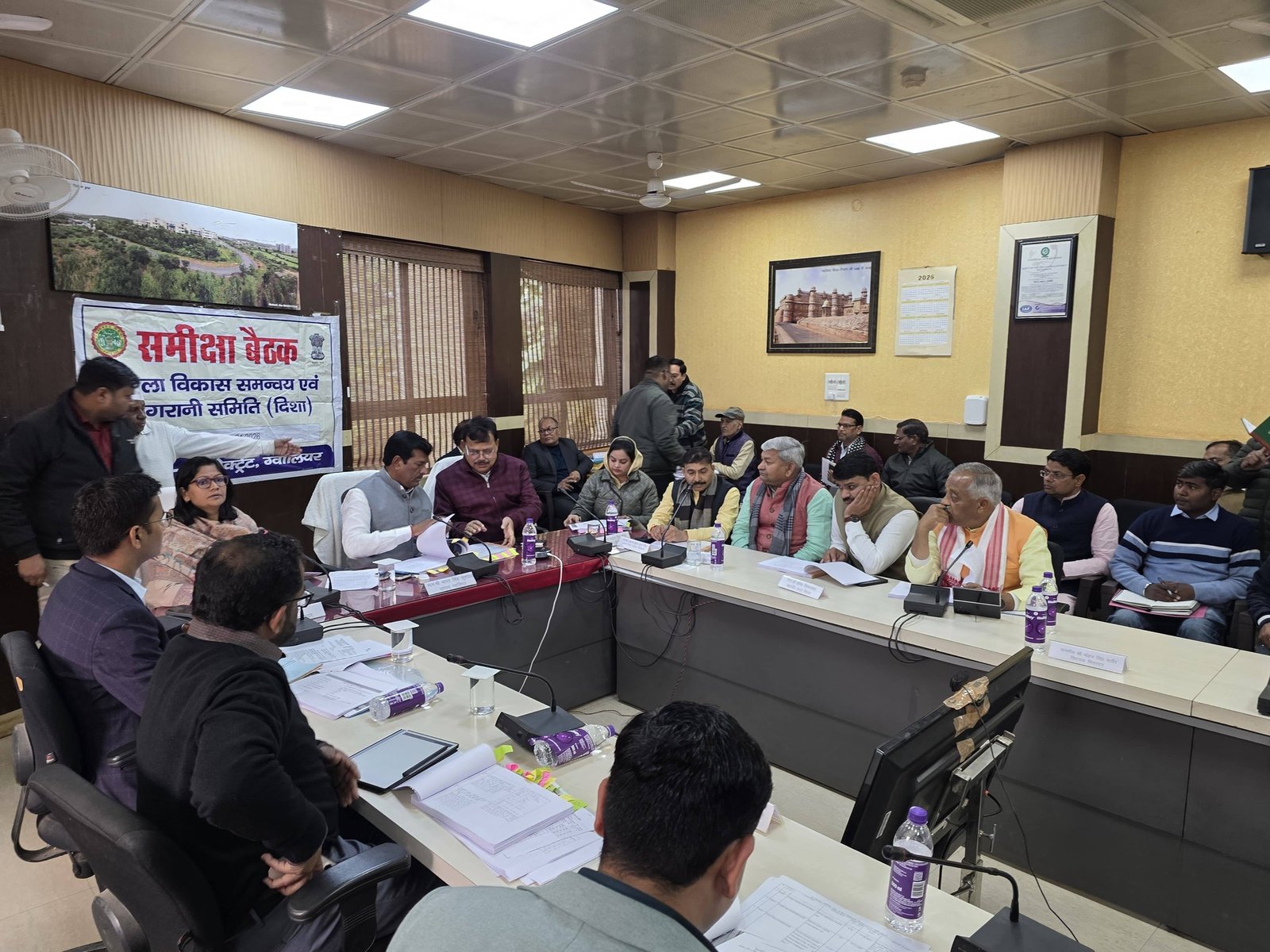 ग्वालियर कलेक्ट्रेट सभागार में आयोजित जिला विकास समन्वय एवं निगरानी समिति (दिशा) की बैठक में सम्मलित हुआ बैठक में जिले के विकास कार्यों, लंबित योजनाओं एवं जनहित से जुड़े महत्वपूर्ण विषयों पर विस्तृत चर्चा की । ? बैठक में प्रमुख रूप से निम्न बिंदु – 1️⃣ भट्ट का पुरा रोड वन विभाग की आपत्ति के कारण रुका हुआ है, शीघ्र समाधान की आवश्यकता। 2️⃣ जखोदा विद्युत फीडर को वन विभाग की NOC नहीं मिलने से कार्य प्रभावित—निरीक्षण कर त्वरित निर्णय लिया जाए। 3️⃣ भितरवार क्षेत्र में निर्माणाधीन छात्रावासों की जानकारी—कहां निर्माण हो रहा है, कितने मीटर हैं, एवं भूमिपूजन किसके द्वारा किया गया। 4️⃣ PHE विभाग की नल-जल योजना—136 पूर्ण बताई गई योजनाओं की वास्तविक स्थिति जानने हेतु विभागीय अधिकारी को साथ में भ्रमण कराने की मांग। 5️⃣ मुख्यमंत्री कृषक रथ योजना—योजना प्रारंभ होने के बावजूद क्षेत्र में रथ न दिखने पर प्राथमिकता से क्रियान्वयन की मांग। 6️⃣ ₹342 करोड़ की योजना—कार्य एजेंसी को ब्लैकलिस्ट किए जाने के बाद भी तीन वर्षों में कार्य पूर्ण न होना, वास्तविक स्थिति स्पष्ट करने एवं जवाबदेही तय करने की मांग। 7️⃣ वन सीमा विवाद—DFO एवं रेंजर के साथ संयुक्त बैठक कर क्षेत्र की सीमाओं पर विस्तृत चर्चा का सुझाव। 8️⃣ भितरवार नवीन मंडी—फाइल कलेक्टर महोदय के पास प्राप्त होने के बाद शीघ्र कार्रवाई की आवश्यकता। 9️⃣ मोहना औद्योगिक क्षेत्र—घोषणा के बाद अब तक की प्रगति एवं भविष्य की कार्ययोजना की जानकारी। ? अतिवृष्टि से क्षतिग्रस्त ग्रामीण सड़कें एवं पुल—जैसे दौलतपुर पुल, इन्हें किसी उपयुक्त फंड से शीघ्र दुरुस्त कराने की मांग। बैठक में स्पष्ट किया गया कि जनहित से जुड़े कार्यों में किसी भी प्रकार की लापरवाही स्वीकार नहीं की जाएगी और सभी योजनाएं समयबद्ध एवं गुणवत्ता के साथ पूर्ण हों! बैठक में श्री भारत सिंह कुशवाह जी (सांसद), श्री प्रद्युमन सिंह तोमर जी(ऊर्जा मंत्री),श्रीमती दुर्गेश कुंवर सिंह जाटव जी(जिला पंचायत अध्यक्ष ), श्री जयप्रकाश राजोरिया जी(नगर जिला अध्यक्ष), श्री प्रेम सिंह राजपूत जी(ग्रामीण जिला अध्यक्ष), श्रीमती रुचिका चौहान जी(ग्वालियर कलेक्टर),नगर निगम कमिश्नर संघ प्रिय जी सहित संबंधित विभागों के अधिकारी मौजूद रहे।