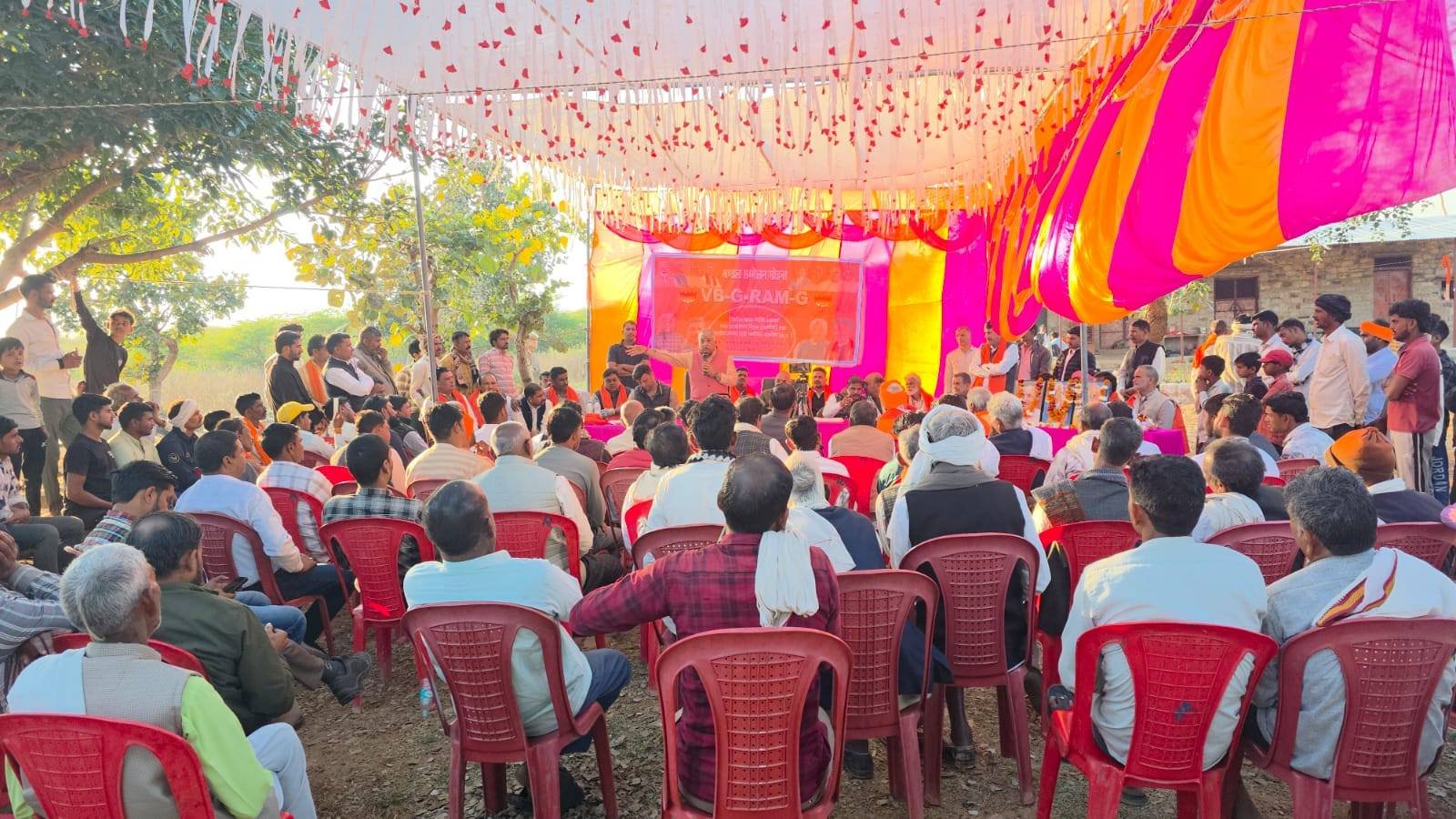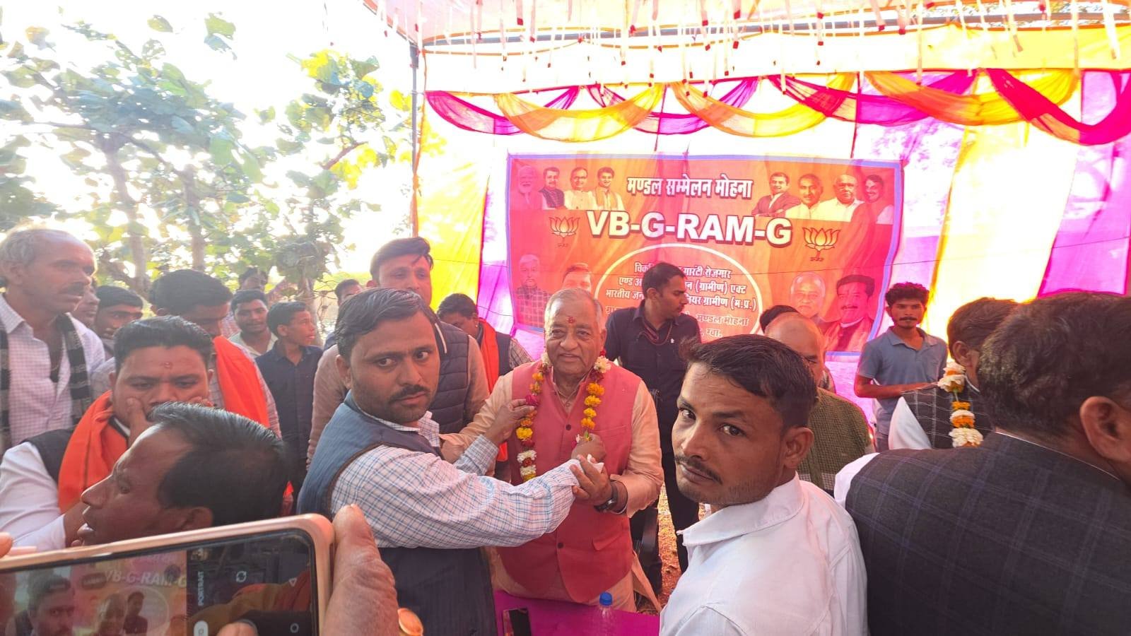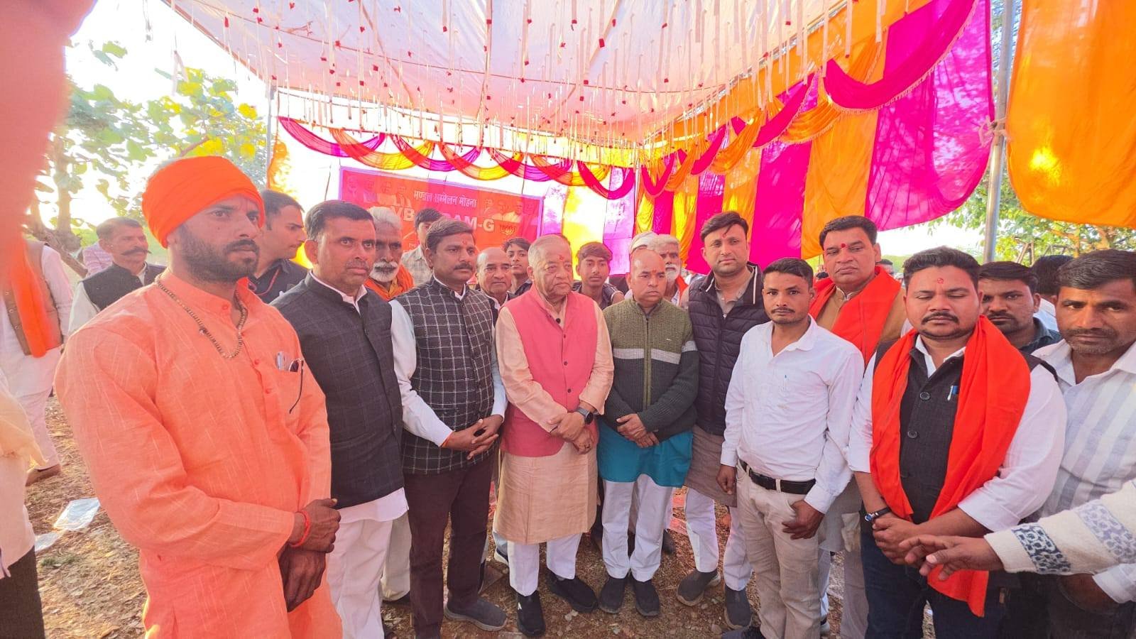 विधानसभा भितरवार ग्राम नजरपुरा पाटई में भारतीय जनता पार्टी मंडल मोहना द्वारा आयोजित विकसित भारत गारंटी फ़ॉर रोजगार एवं आजीविका मिशन ग्रामीण VB_G_RAM_G जनजागरूकता कार्यशाला में सहभागिता कर भारत माता एवं पंडित दीनदयाल उपाध्याय जी के चित्र पर माल्यार्पण कर माननीय प्रधानमंत्री श्री Narendra Modi जी के नेतृत्व में केंद्र सरकार द्वारा लाया गया #बीबी_जी_राम_जी एक्ट ग्रामीण मजदूरों एवं गरीब परिवारों के लिए एक क्रांतिकारी पहल है उन्होंने बताया कि पहले ग्रामीण मजदूरों को वर्ष में 100 दिन रोजगार मिलता था जिसे संशोधित कर अब 125 दिन रोजगार की गारंटी दी गई है जिससे मजदूरी भुगतान में किसी भी प्रकार की परेशानी नहीं होगी और ग्रामीण भारत आत्मनिर्भर एवं सशक्त बनेगा। इस अवसर पर श्री मुकेश भार्गव जी — वीबी जी रामजी विधानसभा प्रभारी,श्री सत्येंद्र धाकड़ जी — मंडल अध्यक्ष,श्री नेमीचंद शिवहरे जी — मंडल संयोजक,श्री दिलीप रावत जी — जनपद अध्यक्ष, श्रीपत आदिवासी जी — जिला पंचायत सदस्य,श्री नरेंद्र शर्मा जी ,श्री निगम तोमर जी — महामंत्री,श्री नरेश धाकड़ जी — कोषाध्यक्ष,श्री संदीप सक्सेना जी,श्री नरेश रावत जी — विधायक प्रतिनिधि,श्री नितेश रावत जी — सहसंयोजक,श्री कोक सिंह परिहार जी — सरपंच,श्री पार्षद कमल खत्री जी — पार्षद,श्री अनिल चौहान जी,श्री मनीराम धाकड़ जी,श्री राजेंद्र नायक जी,श्री टीकाराम बंजारा जी,श्री भानु तोमर जी,श्री सुल्तान आदिवासी जी,श्री जितेंद्र रावत जी,श्री गोटू तोमर जी,श्री बंटी आदिवासी जी,श्री नितेश जैन जी,श्री भूपेंद्र गुर्जर जी,डॉ. श्री राजू झा जी,श्री गोविंद बंजारा जी,श्री बृजेश अग्रवाल जी,श्री राजेंद्र धाकड़ जी,श्री लालबाबू खान जी,श्री महेंद्र तोमर जी,श्री संजय मांझी जी,श्री नंदू दीक्षित जी,श्री मजबूत गुर्जर जी,श्री अरुण परिहार जी,श्री अनिल पचौरी जी,श्री ज्ञान सिंह बंजारा जी सहित भारतीय जनता पार्टी के कार्यकर्ता एवं ग्रामीणजन सम्मलित रहें।