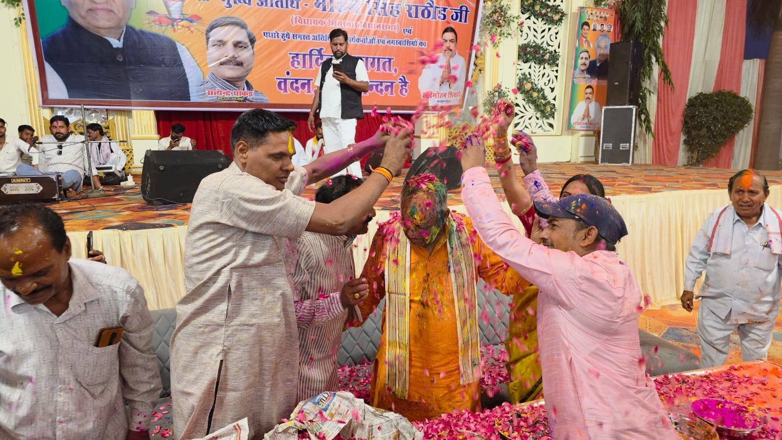 विधानसभा भितरवार ग्राम मोहना शिवहरे गार्डन में श्री बल्ले शिवहरे जी द्वारा आयोजित होली मिलन समारोह के कार्यक्रम में सम्मिलित होकर सभी क्षेत्रवासियों एवं साथियों के साथ होली का पर्व हर्षोल्लास और आपसी भाईचारे के साथ मनाया। इस अवसर पर उपस्थित सभी साथियों के साथ गुलाल लगाकर होली खेली तथा एक-दूसरे को शुभकामनाएं देते हुए प्रेम, सौहार्द और सामाजिक एकता का संदेश दिया। कार्यक्रम में उपस्थित जनसमुदाय को संबोधित करते हुए होली केवल रंगों का ही नहीं बल्कि आपसी प्रेम, सद्भाव और सामाजिक समरसता का पर्व है, जो हमें एक-दूसरे के करीब लाने का कार्य करता है। ऐसे आयोजन समाज में भाईचारे, एकता और अपनत्व की भावना को मजबूत करते हैं। इस सुंदर आयोजन के लिए श्री बल्ले शिवहरे जी का आभार व्यक्त किया और सभी क्षेत्रवासियों को होली की हार्दिक शुभकामनाएं दीं। इस अवसर पर बड़ी संख्या में गणमान्य नागरिक, जनप्रतिनिधि, कार्यकर्ता एवं क्षेत्रवासी उपस्थित रहे ।