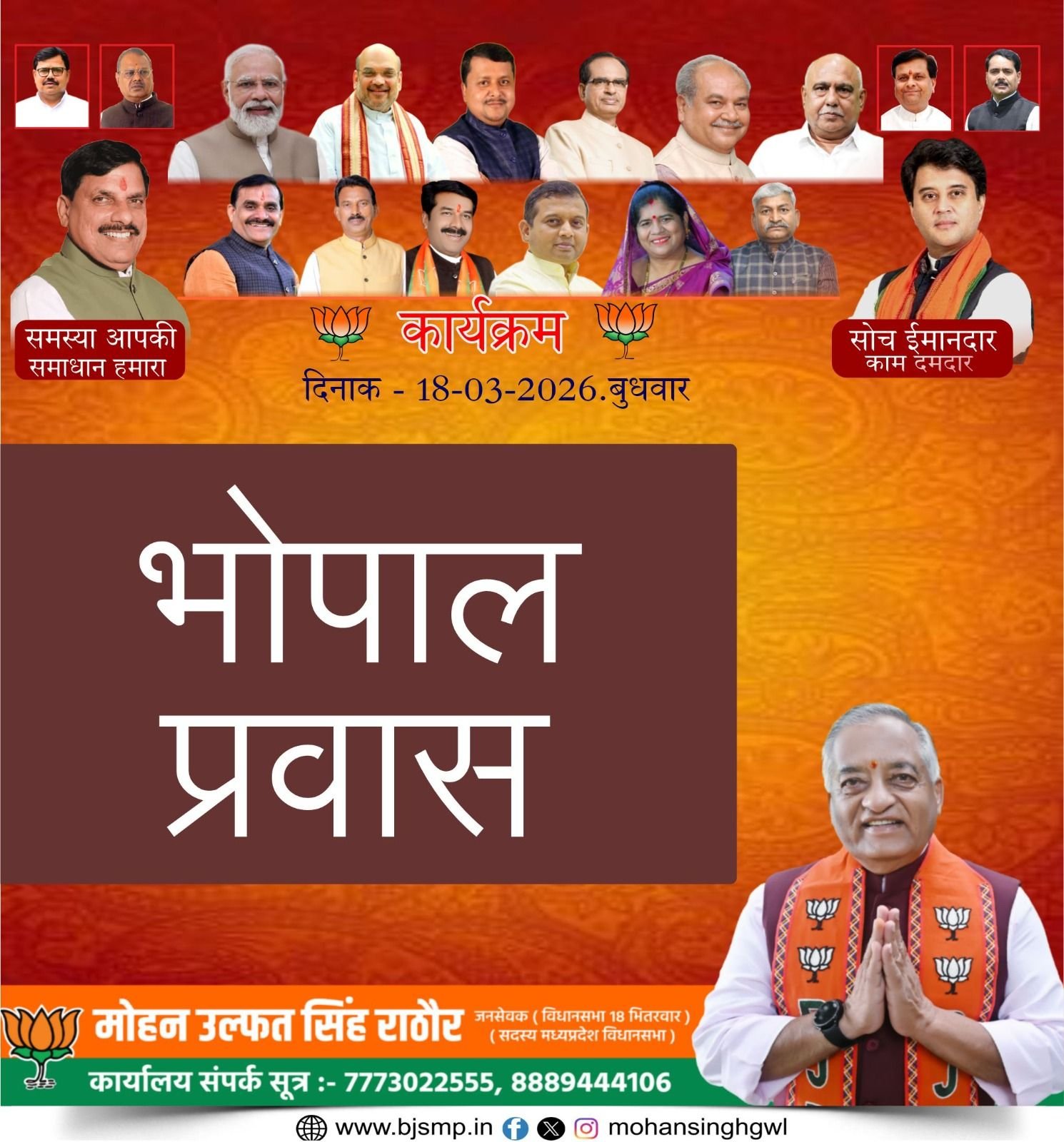 भोपाल भारतीय जनता पार्टी कार्यालय में मध्य प्रदेश-छत्तीसगढ़ प्रभारी श्री Ajay Jamwal जी से सौजन्य भेंट कर संगठनात्मक विषयों पर विस्तृत चर्चा की। साथ ही माननीय मुख्यमंत्री Dr Mohan Yadav जी द्वारा विधानसभा भितरवार क्षेत्र में किए जा रहे विकास के भागीरथ प्रयासों से अवगत कराया तथा समस्त वरिष्ठ नेतृत्व का हृदय से धन्यवाद ज्ञापित किया।