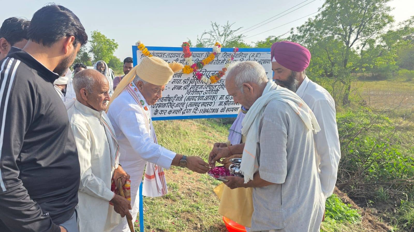 विधानसभा भितरवार ग्राम लदवाया में 488 मीटर लंबाई एवं 22.23 लाख रुपये की लागत से बनने वाली सीसी रोड़ का विधिवत भूमि पूजन कर क्षेत्र के विकास की दिशा में एक और महत्वपूर्ण कदम बढ़ाया। इस अवसर पर ग्रामवासियों द्वारा आत्मीय स्वागत कर ग्रामीणों को भारतीय जनता पार्टी की जनहितैषी योजनाओं के वारे में विस्तार से अवगत कराया। इस अवसर पर श्री कुलवंत बाजवा जी (मंडल अध्यक्ष), श्री रामस्वरूप यादव जी (सरपंच), श्री सोनू राणा जी (सरपंच), श्री महेंद्र गुर्जर जी (सरपंच),श्री राजवीर सिंह गुर्जर जी,श्री पंजाब सिंह यादव जी, श्री रवीन्द्र जाट जी, श्री बदन सिंह जी , श्री नरेंद्र रावत जी , श्री श्याम यादव जी एवं भारतीय जनता पार्टी के कार्यकर्ता एवं ग्रामीण जन सम्मलित रहें