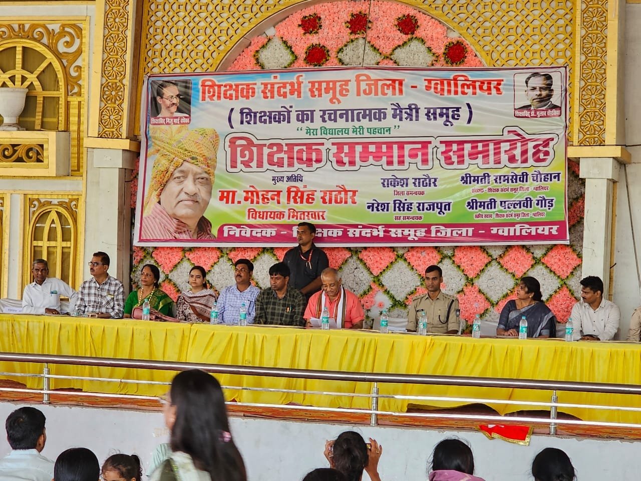 CR पैलेस ग्वालियर में शिक्षक संदर्भ समूह जिला ग्वालियर द्वारा शिक्षको का रचनात्मक मैत्री समूह मेरा विद्यालय मेरी पहचान द्वारा शिक्षक सम्मान समारोह में मुख्यअतिथि भाजपा विधायक एव जनसेवक श्री मोहन उल्फत सिंह राठौर जी सम्मलित रहें एव श्री राठौर जी ने विधानसभा भितरवार घाटीगांव ब्लॉक के शिक्षा के क्षेत्र में उत्कृष्ट कार्य करने वाले शिक्षकों को सम्मानित किया।