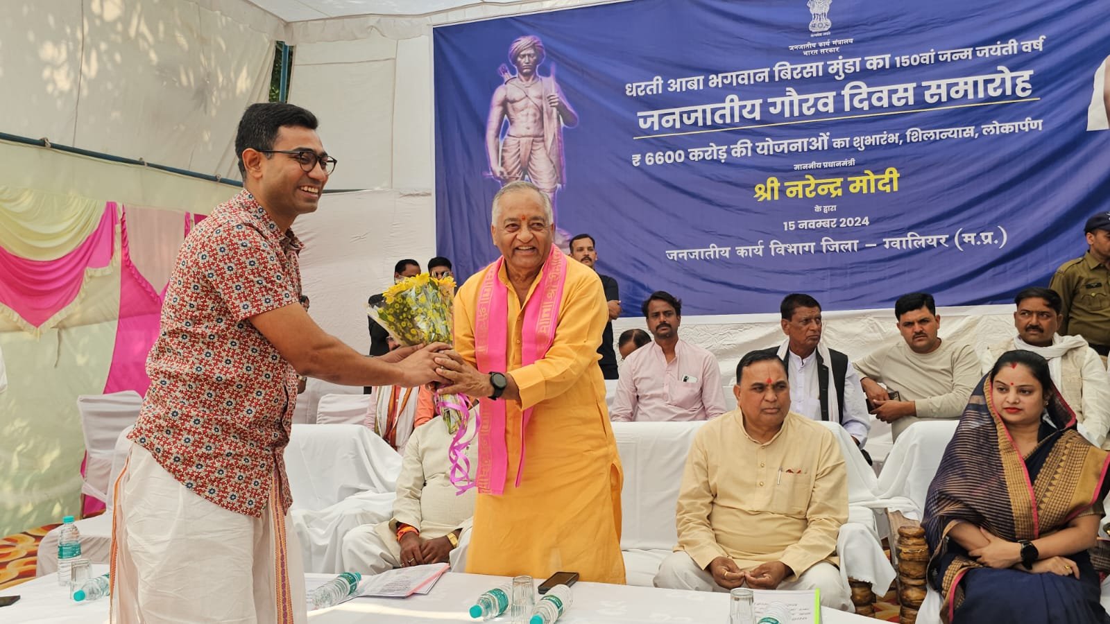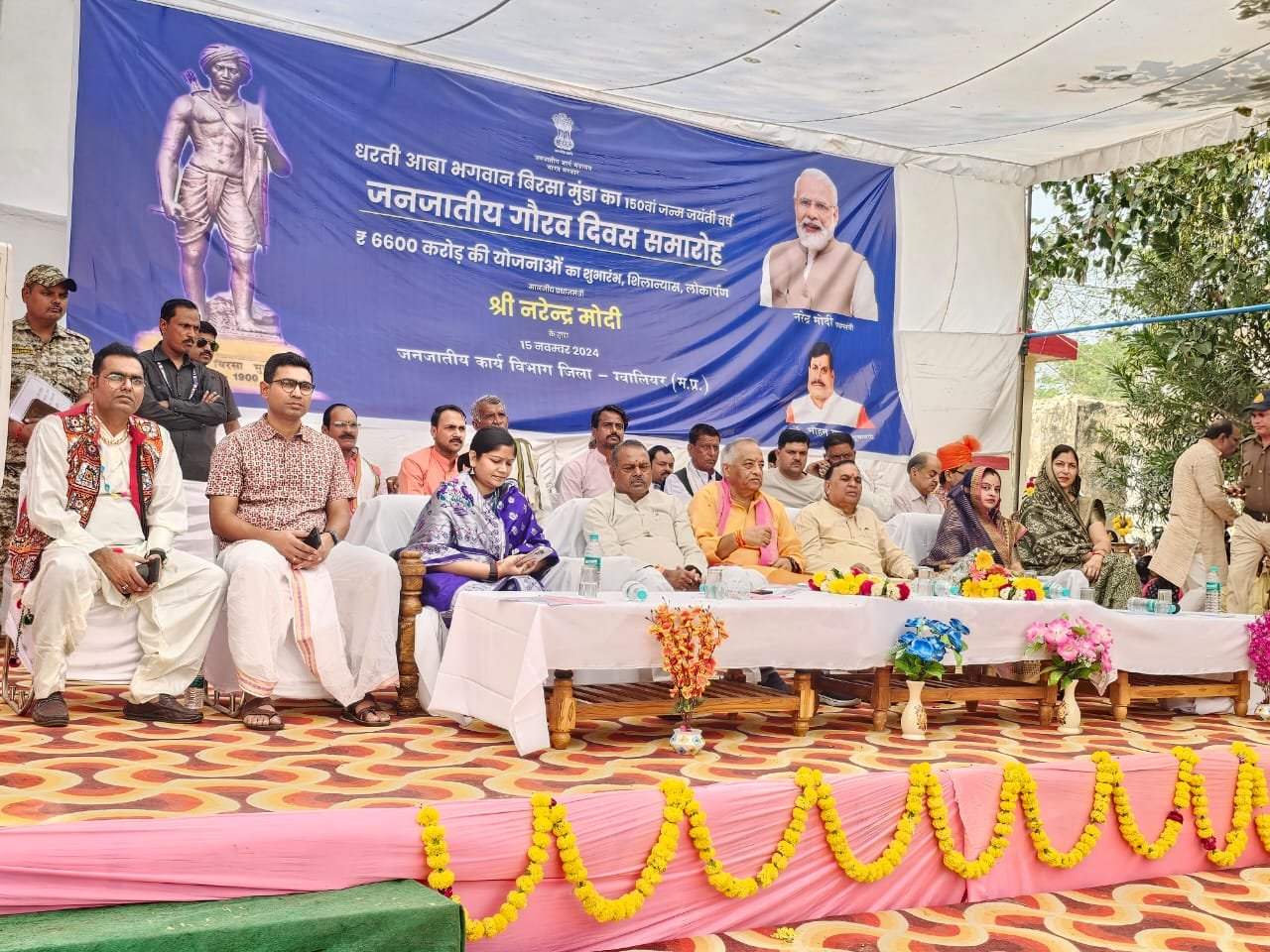 जनजातीय गौरव को हमारे प्रधानमंत्री माननीय श्री Narendra Modi जी उत्तरोत्तर बढ़ा रहे हैं । हमारी मप्र सरकार यशस्वी मुख्यमंत्री Dr Mohan Yadav जी जनजातीय विकास के लिए प्रधानमंत्री के नेतृत्व में लगातार समर्पित भाव से कार्यरत हैं ।भगवान बिरसा मुंडा जी की 150 वीं जयंती जनजातीय गौरव दिवस पर प्रधानमंत्री जी द्वारा 6600 करोड़ की परियोजनाओं के लोकार्पण समारोह के अवसर पर विधानसभा भितरवार ग्राम बरई में आयोजित जिला स्तरीय जनजातीय गौरव दिवस समारोह में सम्मलित हुआ । ग्वालियर के सहरिया जनजाति के बंधुओं ने इसमें सहभागिता की । इस अवसर पर जनजातीय विकास को लेकर विभागीय प्रदर्शनी भी लगाई गई है जिसके माध्यम से मप्र में जनजातीय विकास का स्वरूप सामने दिखाई दे रहा है । इस अवसर पर कैबिनेट मंत्री श्री नारायण सिंह कुशवाह जी ,जिला पंचायत अध्यक्ष श्रीमती दुर्गेश कुंवर जाटब जी ,मछुआ कल्याण बोर्ड के अध्यक्ष श्री सीताराम बाथम जी, ग्वालियर कलेक्टर श्रीमती रुचिका चौहान जी, जिलापंचायत CEO,SDM, तहसीलदार, पटवारी,BMO,BEO एवं समस्त विभाग के अधिकारी एवं भारतीय जनता पार्टी के कार्यकर्ता एवं जनसेवक साथी सम्मलित रहें।