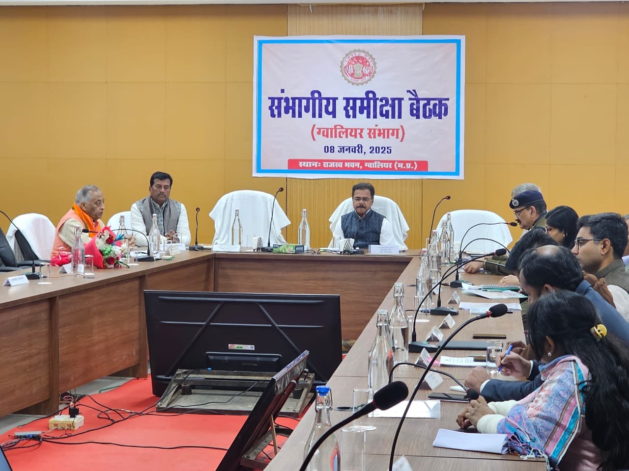 ग्वालियर संभाग आयुक्त कार्यालय के सभाकक्ष में आयोजित विजन डॉक्यूमेंट और विकास कार्यों की समीक्षा बैठक में सहभागिता कर विधानसभा भितरवार के सर्वांगीण विकास को ध्यान में रखकर महत्वपूर्ण सुझाव दिए। बैठक में ऊर्जा मंत्री श्री Pradhuman Singh Tomar जी, कैबिनेट मंत्री श्री Narayan Singh Kushwah जी, सांसद श्री Bharat Singh Kushwah जी,ग्वालियर संभाग प्रभारी सचिव और अतिरिक्त मुख्य सचिव वन विभाग श्री अशोक वर्णवाल जी,संभागीय आयुक्त श्री मनोज खत्री जी,आईजी श्री अरविंद सक्सेना,ग्वालियर कलेक्टर श्रीमती रुचिका सिंह चौहान जी और वरिष्ठ जनप्रतिनिधि मौजूद रहे।