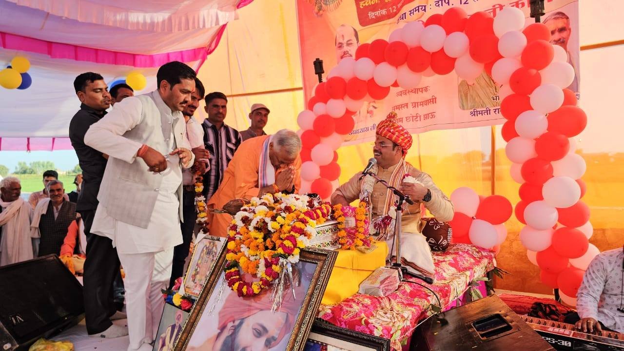 विधानसभा भितरवार ग्राम छोटी झाऊ मे चल रही श्रीमद् भागवत कथा मे सम्मलित होकर हनुमान जी महाराज के दर्शन कर कथावाचक श्री विष्णुदंत शास्त्री जी को फूलमाला पहनाकर आशीर्वाद लिया एवं अपने विचार व्यक्त किए! इस अवसर पर श्री नरेंद्र रावत जी (मंडल अध्यक्ष), श्री उदयभान सिंह रावत जी , श्री नरेश अग्रवाल जी , श्री माधो कुशवाह जी, श्री ब्रिजेंद्र गुर्जर जी, श्री राहुल कोटिया जी, श्री जीतू गुर्जर जी ,श्री बंटी गुर्जर जी , श्री हेमंत रावत जी, श्री लायक सिंह गुर्जर जी एव समस्त कार्यकर्त्ता एवं जनसेवक साथी सम्मलित रहे।