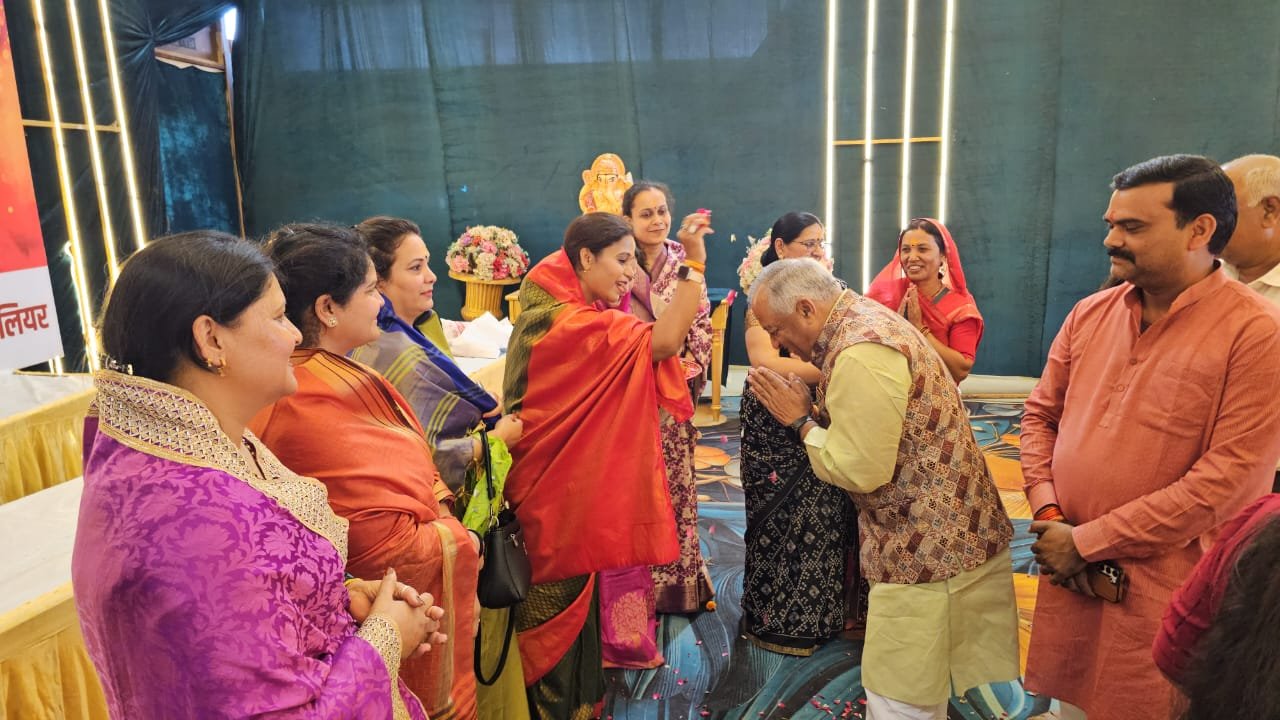 संस्कृति बैंक्वेट ग्वालियर में भारतीय जनता पार्टी महानगर ग्वालियर द्वारा आयोजित होली मिलन समारोह में सम्मलित