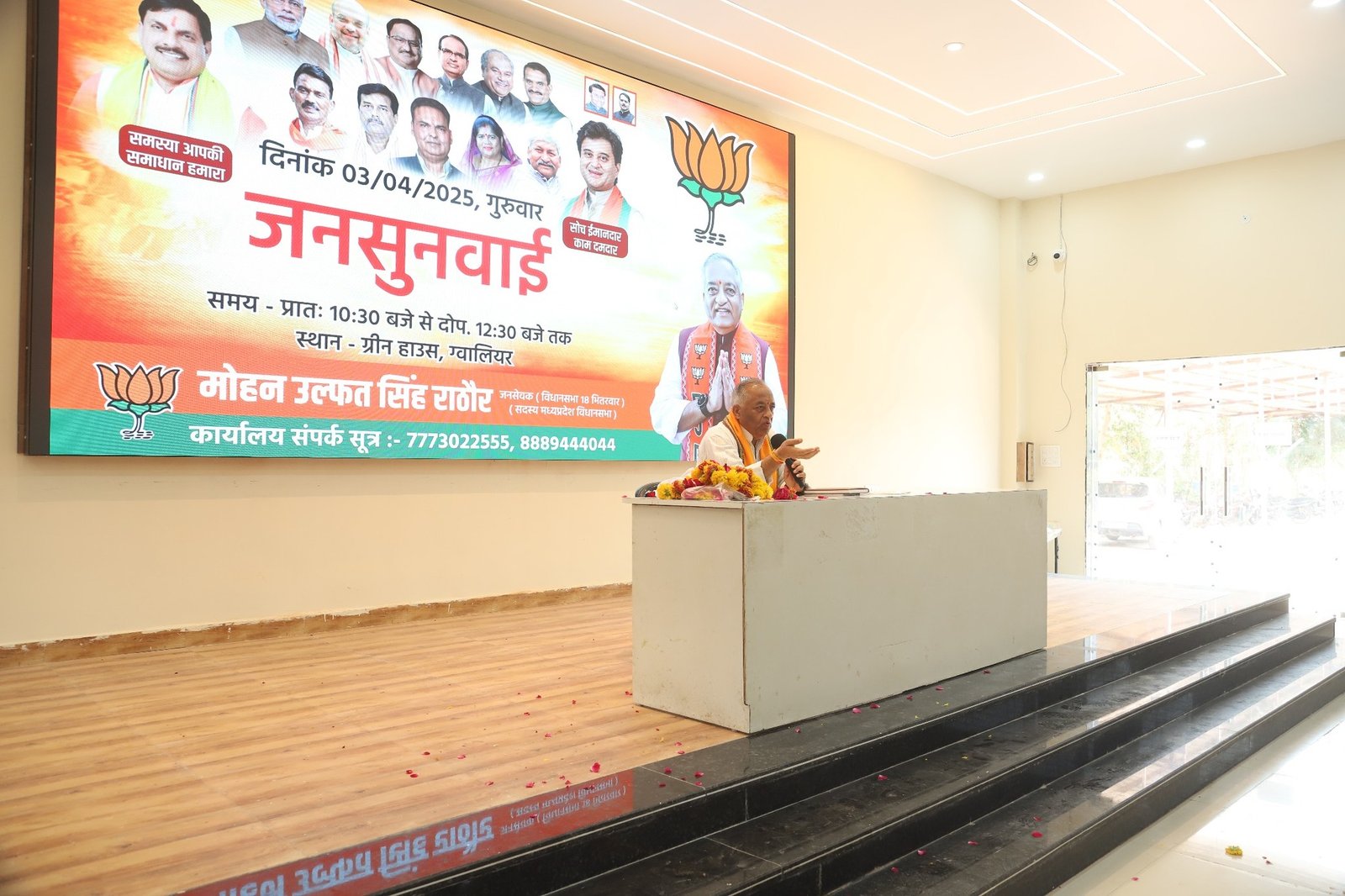 पूर्व निश्चित दिन के अनुसार प्रत्येक गुरुवार को 11:00 बजे से लेकर 1:00 बजे तक जनसेवा केंद्र ग्रीन हाऊस पर जनसुनवाई में विधानसभा भितरवार एव आसपास क्षेत्र से आए हुए कार्यकर्ताओं , सहयोगियों एव आमजनमानस की बिजली, पानी, राशन जैसी समस्याओं को सुना एव संबंधित अधिकारियों से बात कर तत्काल निराकरण कराया।इस अवसर पर समस्त कार्यकर्त्ता एव ग्रामवासी सम्मलित रहें!