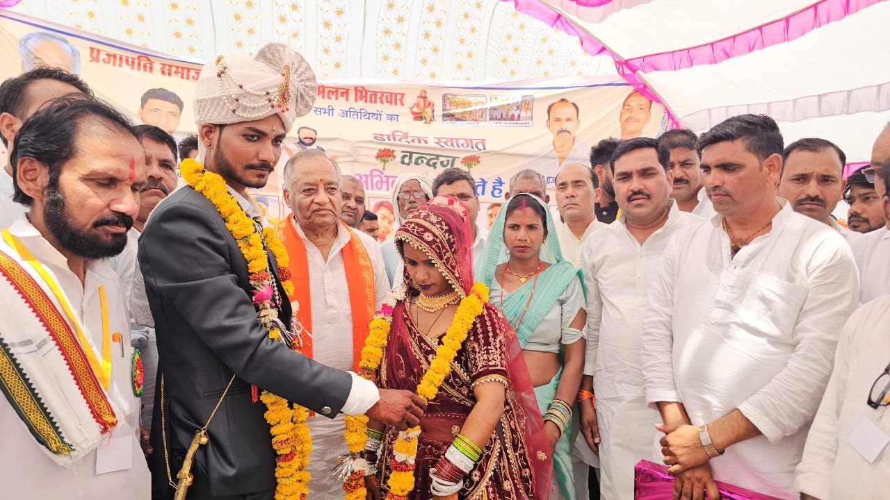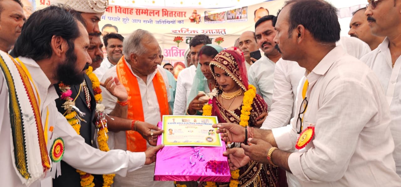 भितरवार प्रजापति समाज कन्या विवाह सम्मेलन में गरिमामयी उपस्थित। भितरवार में प्रजापति समाज द्वारा आयोजित कन्या विवाह सम्मेलन में समाज के लोगों और जनप्रतिनिधियों ने बड़ी संख्या में भाग लेकर कार्यक्रम की शोभा बढ़ाई इस अवसर पर समाज के वरिष्ठजनों और पदाधिकारियों ने समाज की एकजुटता, शिक्षा, रोजगार को लेकर अपने विचार रखे तथा मांगें प्रस्तुत कीं एवं सम्मेलन में नव-दंपत्ति को सुखी एवं सफल वैवाहिक जीवन की शुभकामनाएँ दी!! इस अवसर पर प्रजापति समाज अध्यक्ष श्री रमेश प्रजापति जी, श्री बलदेव अग्रवाल जी (नगर परिषद अध्यक्ष), श्री नरेंद्र रावत जी (मंडल अध्यक्ष),श्री भगवान सिंह प्रजापति जी, श्री दाताराम प्रजापति जी, श्री सीताराम प्रजापति जी, श्री राजेंद्र प्रजापति जी, श्री कैलाश प्रजापति जी, श्री मनीराम प्रजापति जी, श्री बलवीर प्रजापति जी (पार्षद), श्री उदयभान सिंह रावत जी, श्री गजब सिंह रावत जी (पार्षद), श्री कैलाश खटीक जी (पार्षद), श्री कल्लू रावत जी, श्री बिजेंद्र गुर्जर जी, श्री नरेश अग्रवाल जी एवं भारतीय जनता पार्टी के कार्यकर्ता एवं जनसेवक साथी सम्मलित रहें।
