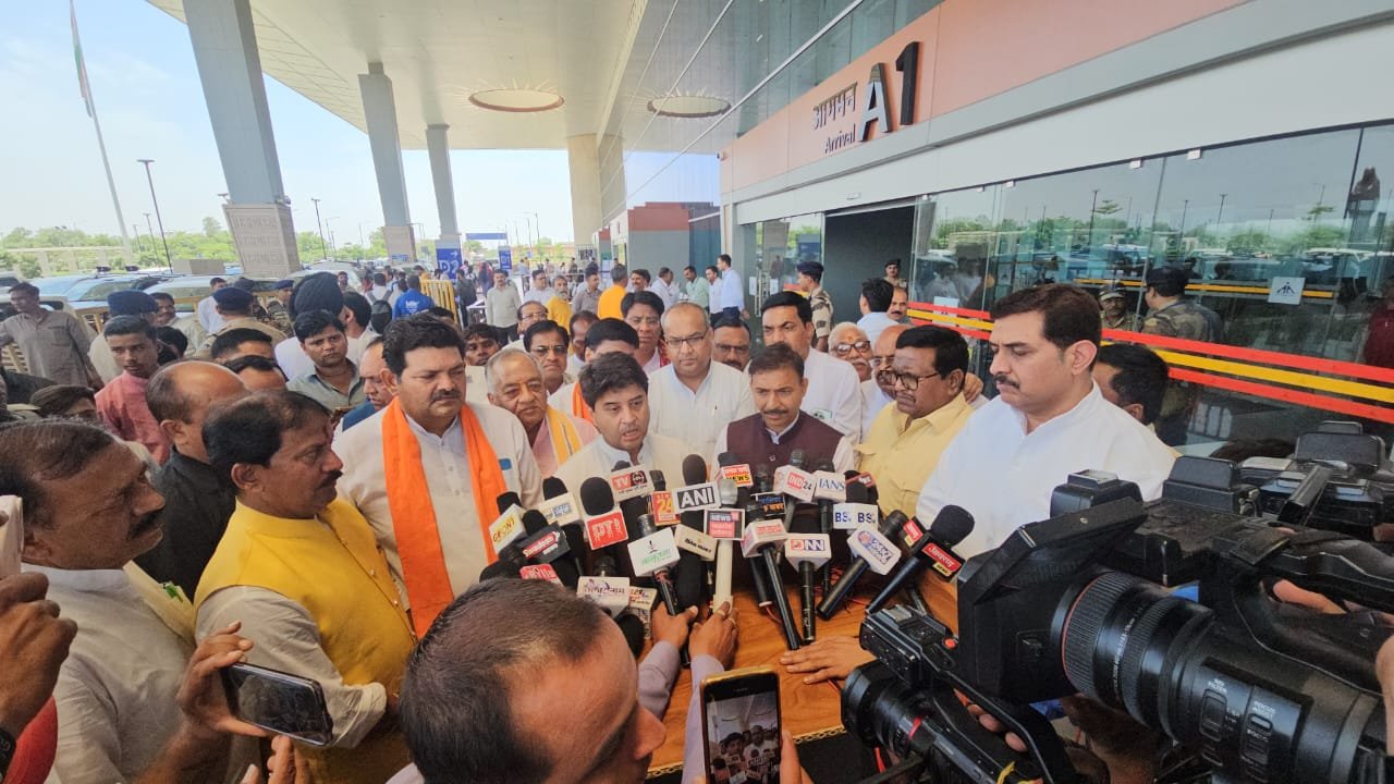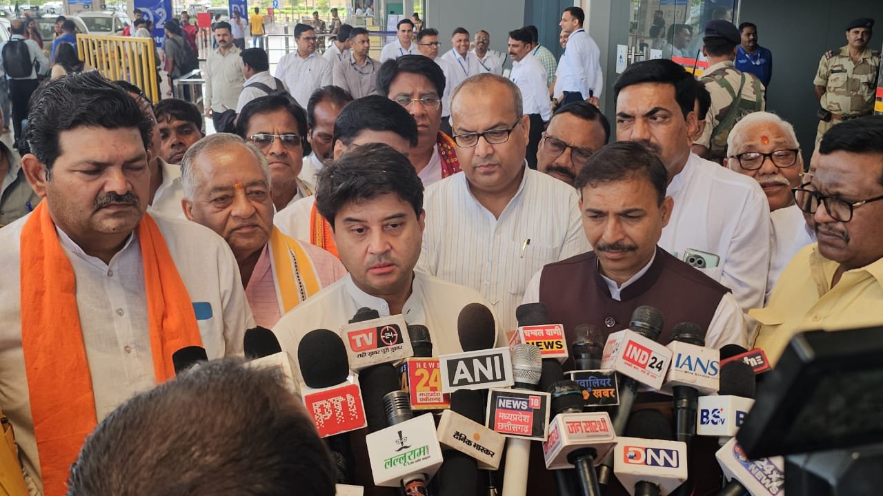 ग्वालियर एयरपोर्ट पर केंद्रीय मंत्री श्रीमंत Jyotiraditya M Scindia जी का आत्मीय स्वागत कर अगुवानी की।
