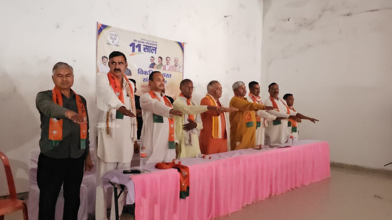 प्रधानमंत्री श्री नरेंद्र मोदी जी के नेतृत्व में सेवा, सुशासन और गरीब कल्याण के 11 सफल वर्षों की पूर्णता पर "विकसित भारत का अमृतकाल" संकल्प सभा आज विधानसभा भितरवार ग्राम घाटीगांव में सम्मलित हुआ। कार्यक्रम के शुभारंभ में पितृ पुरुषों को पुष्पांजलि अर्पित कर सभी अतिथियों का स्नेहपूर्वक स्वागत किया एवं जनप्रतिनिधियों और कार्यकर्ताओं के विचार सुने एवं अपने विचार रखते हुए वर्ष 2047 तक विकसित भारत के निर्माण का संकल्प दोहराया इसी के साथ ही एक पेड़ मां के नाम अभियान के अंतर्गत वृक्षारोपण कर मातृ सम्मान का संदेश दिया। इस अवसर पर श्री प्रेम सिंह राजपूत जी (जिला अध्यक्ष), श्री चंचल राठौड़ जी (मंडल अध्यक्ष), श्री कोमल पवैया जी (कार्यक्रम प्रभारी), श्रीपत आदिवासी जी (जिला पंचायत सदस्य), श्री सुभाष गोयल जी (अनुसूचित मोर्चा जिला अध्यक्ष),श्री राजेंद्र गुर्जर जी (सरपंच), श्री अमर सिंह कौरव जी, श्री अन्नू चौहान जी , श्री उदय सिंह रावत जी, श्री चंद्रभान राठौड़ जी एवं पार्टी के अनेक पदाधिकारी व कार्यकर्ता उपस्थित रहे।