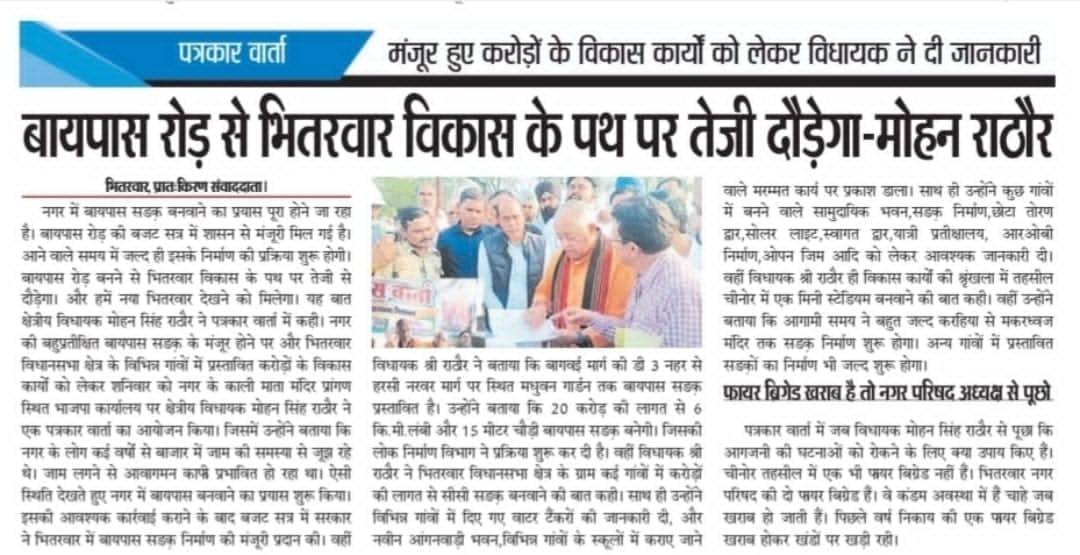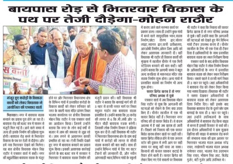 भितरवार के बायपास रोड़ (D3 नहर) का औचक निरीक्षण